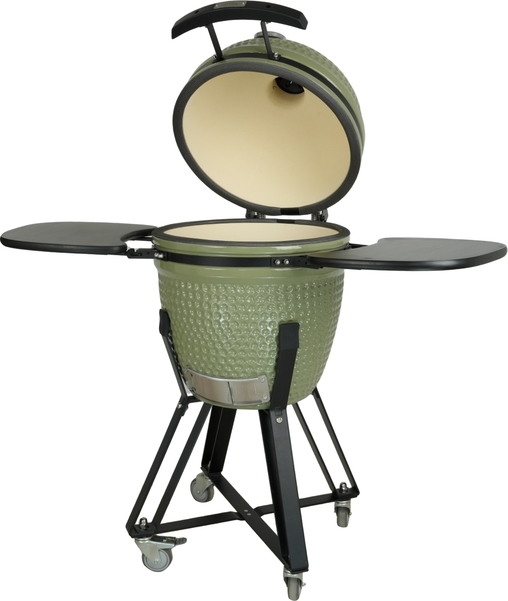 Het duurzame keramiek zorgt voor een uitstekende warmteverdeling en langdurige temperatuurstabiliteit. De standaard meegeleverde heat deflector maakt het mogelijk om te wisselen tussen direct en indirect grillen. Dankzij de hoogwaardige Glass Fiber Closing sluit de kamado perfect af, waardoor je nauwkeurige controle houdt over luchtstromen en temperatuur.