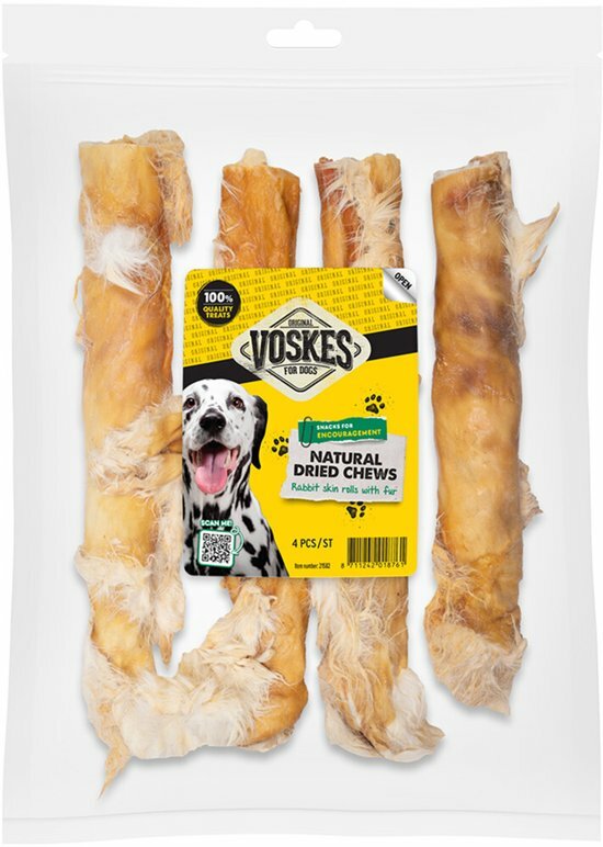 VoskesSchrijf zelf een recensie over "VOSKES Hondnsnck konijnenhuidrollen m/vacht 4st"
